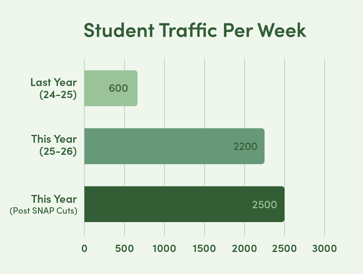 WHOLE supports 2,400+ students weekly and the nearly 50% of WWU students that experience basic needs insecurities.
